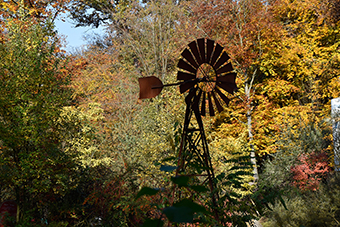 Dieses alte Wasserrad steht umgeben von Känguruhs und